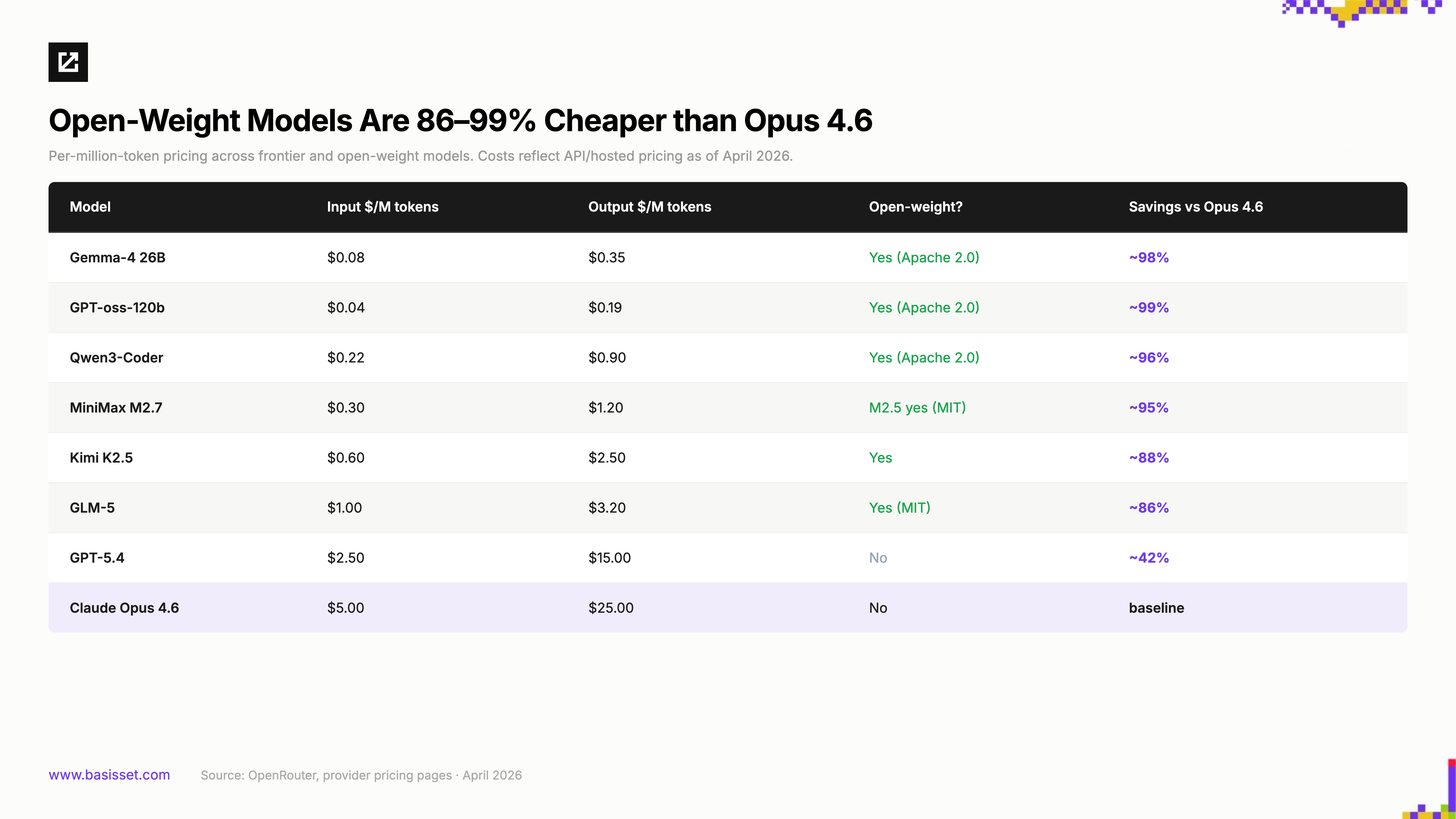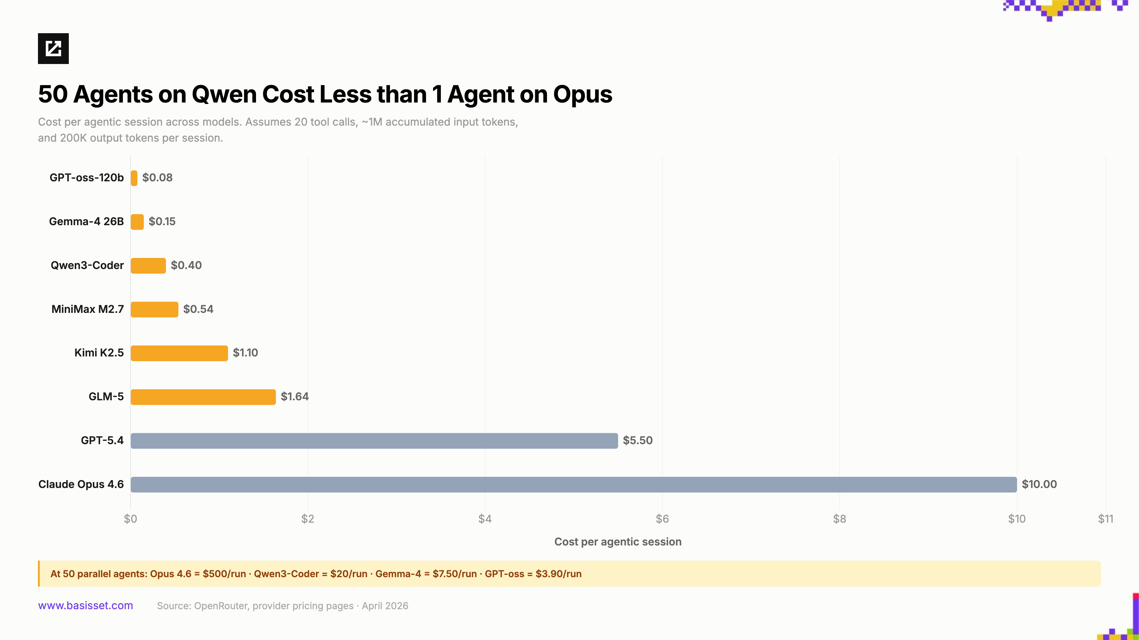 Run the math on a typical agentic session and the gap is 10-25x. Now multiply by fifty parallel agents running speculative execution paths, redundant verification loops, and always-on background tasks. The teams building those architectures are running open models, not because they want to, but because they could not afford frontier pricing at that scale. The smaller versions of many of these models can run locally for free if they fit on your hardware.